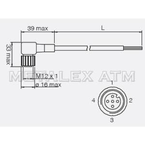 Konektor M12, 90° CEI 2022 II 4 polni, kabl dužine 5 metara